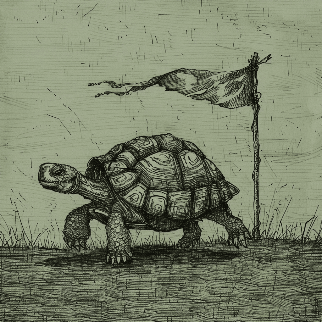 他眼睜睜地看著烏龜,在他抵達的前一秒,緩緩地、穩穩地爬過了終點線!