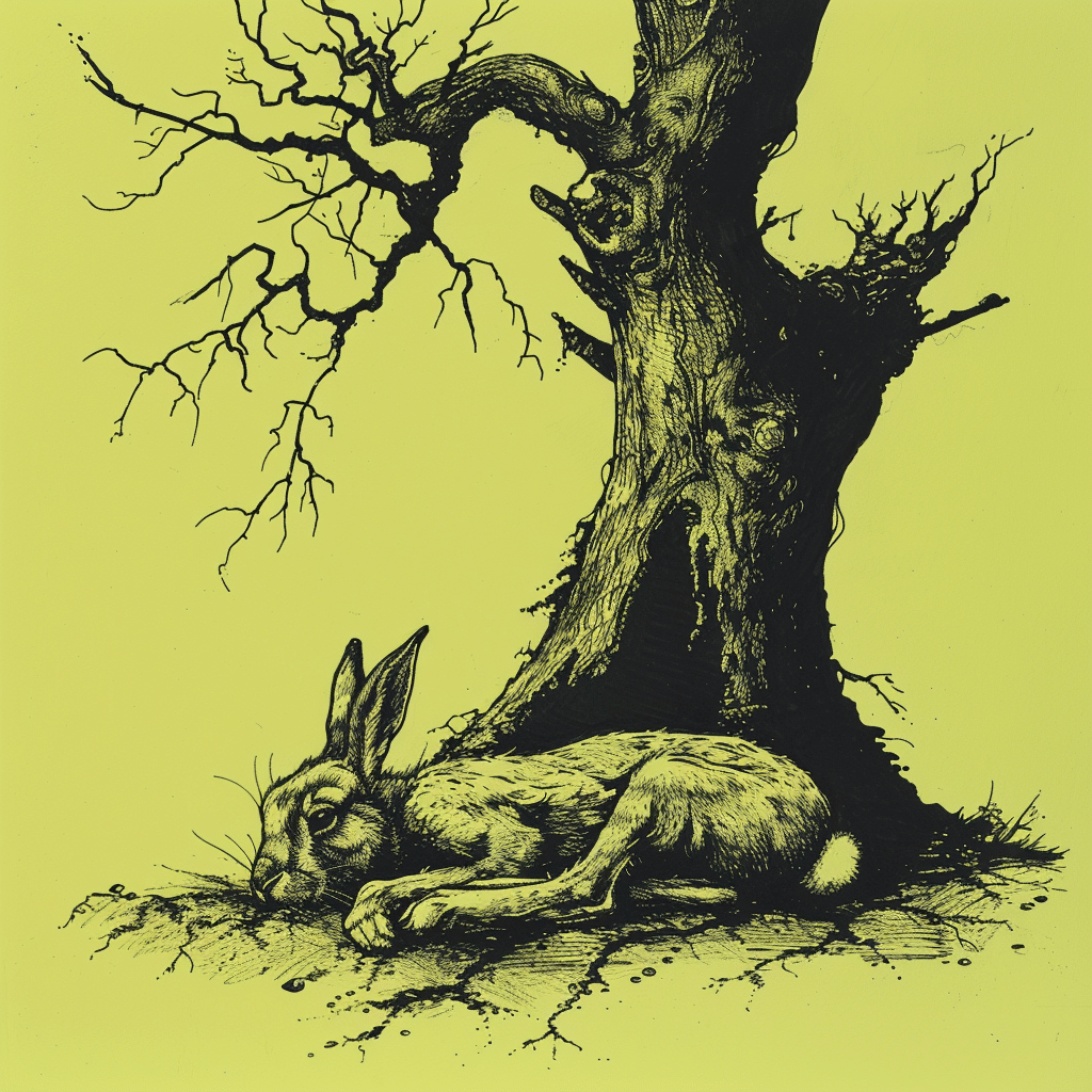 於是,兔子就在路邊一棵舒服的大樹下躺了下來,沒多久,就「呼嚕——呼嚕——」地睡著了。