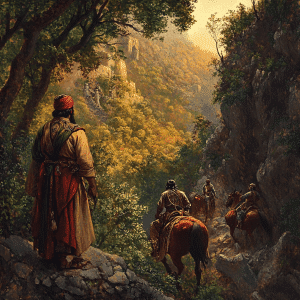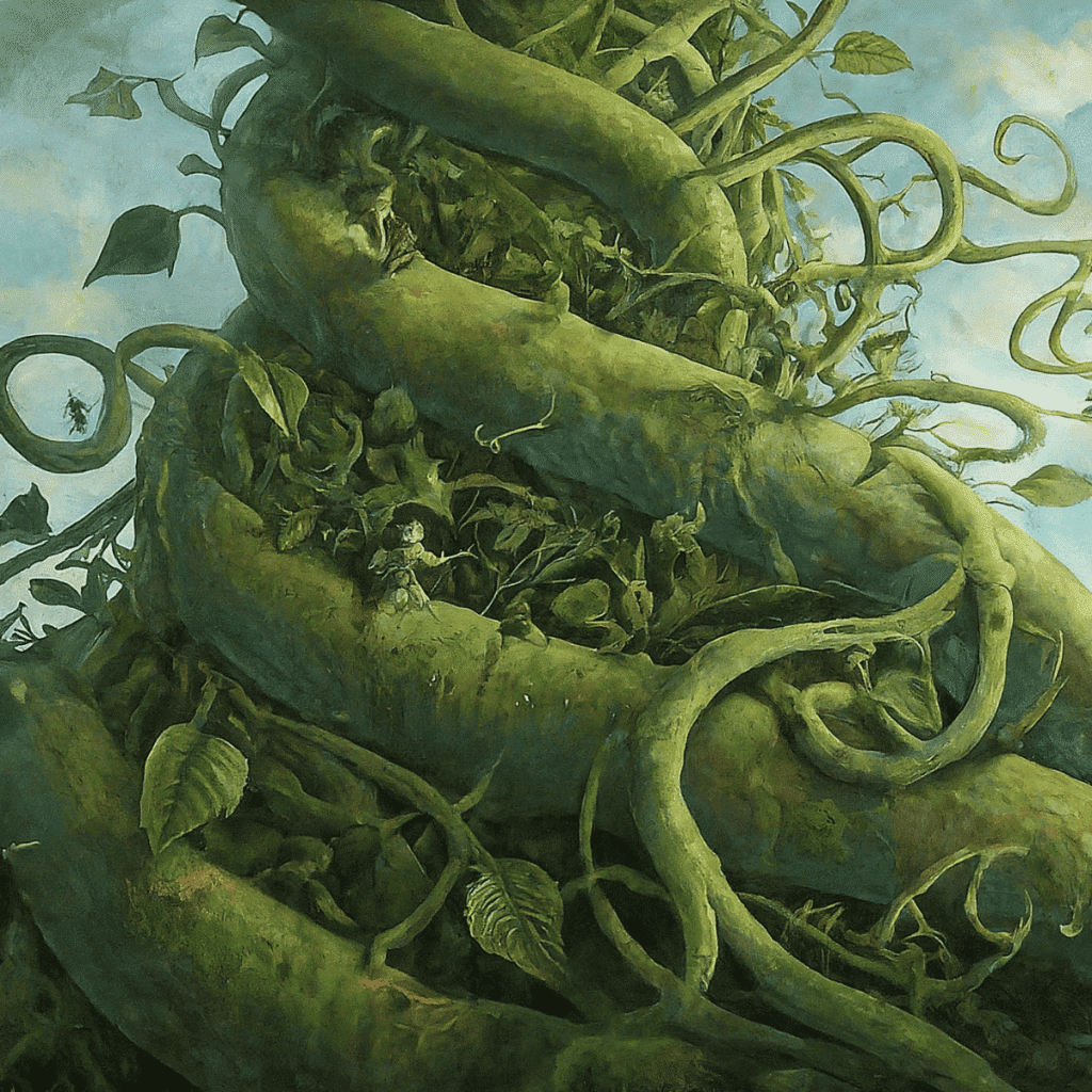 傑克仔細觀察著魔豆藤蔓,發現藤蔓上有許多突起的地方,像是天然形成的階梯。他的心跳開始加快,一個大膽的想法在腦海中浮現。