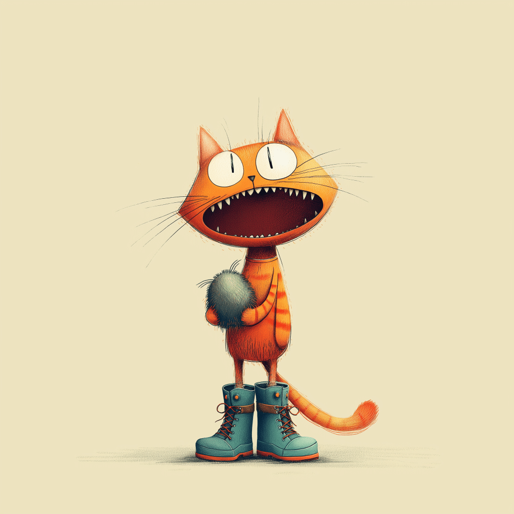 一天早晨,貓一邊舔著爪子,一邊對小兒子說:「主人,今天我們要去河邊散散步。不過,你要聽我的指示,這次計畫非常重要!」小兒子好奇地問:「什麼計畫?你又在打什麼主意?」貓神秘地笑了笑:「別擔心,保證你會感謝我的!」