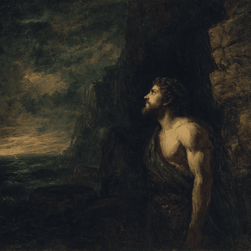 洞穴愈走愈深,光線愈來愈稀薄,最後徹底消失。海克力士在黑暗中前行,只憑著腳底的感覺判斷方向。不知走了多久,前方出現了一道幽幽的光,那是冥界河流斯提克斯發出的微光,灰白而冰冷,像是月光灑在腐朽的水面上。