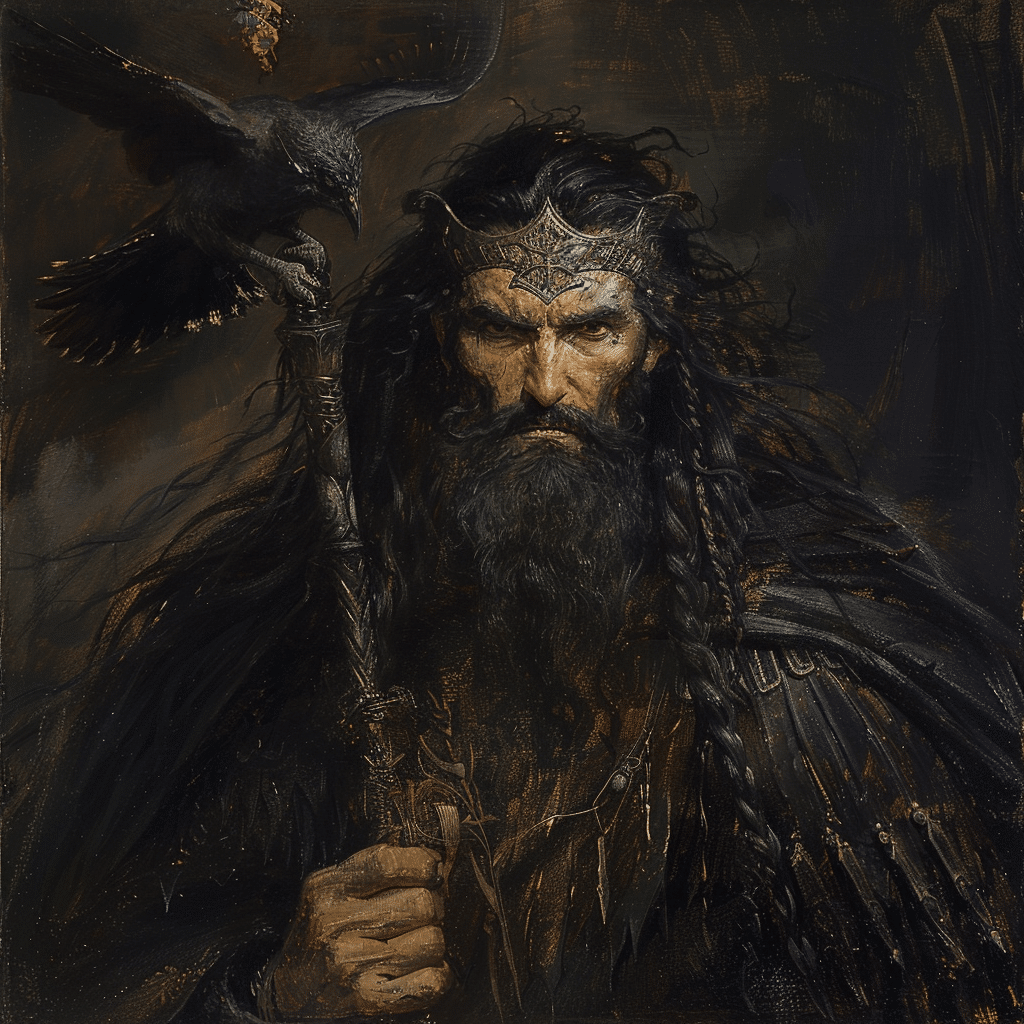 黑帝斯身著黑色長袍,頭戴頭盔,面容嚴峻,眼神深邃如同無底的深淵。珀耳塞福涅則站在他身旁,臉上帶著一絲若有似無的微笑,望著眼前這個徒手制服了刻耳柏洛斯的人類。